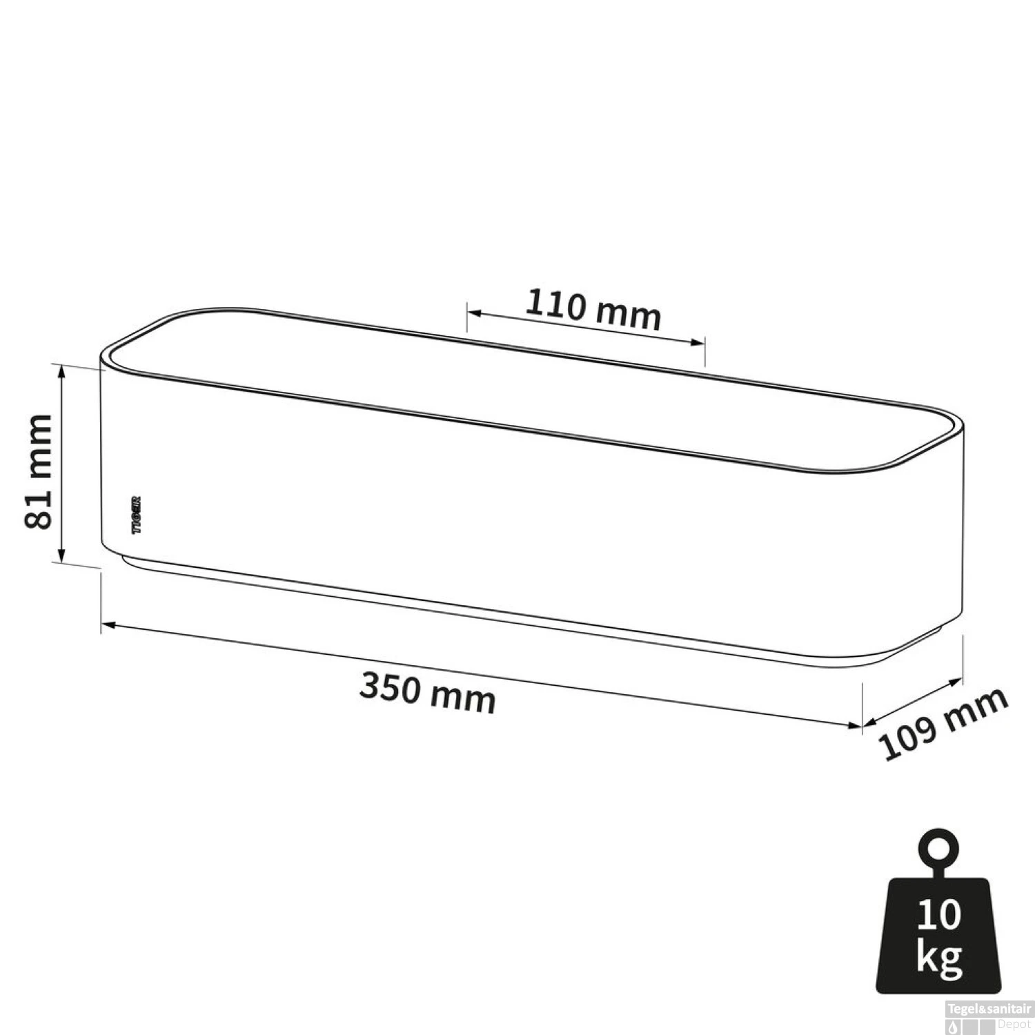 Het mandje is gemaakt van kunststof en heeft een witte kleur. Het mandje heeft een lengte van 35 cm, een breedte van 10,9 cm en een hoogte van 8,1 cm.