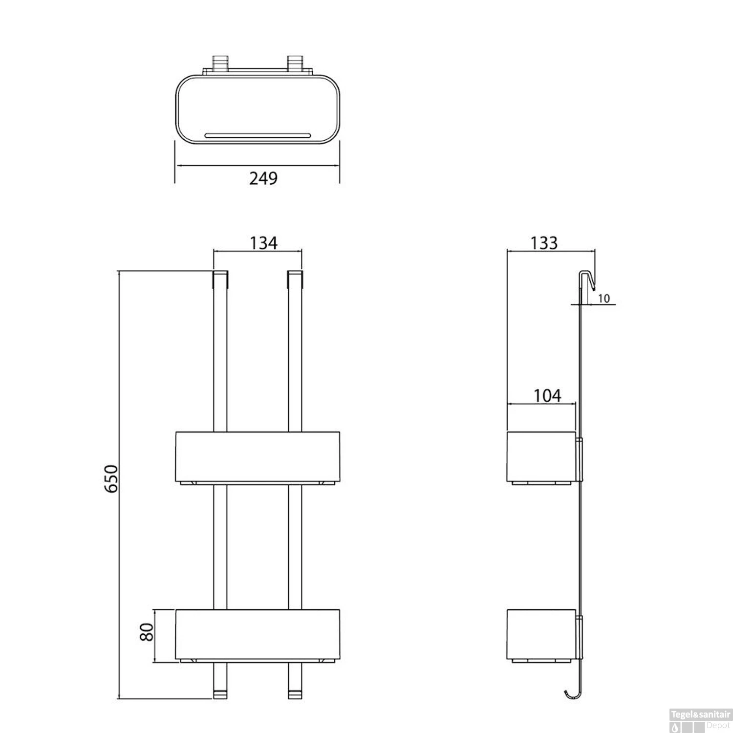 Het rek is 65 cm lang. De bakjes hebben een breedte van 24,9 cm en ze zijn 8 cm hoog. Gemaakt van RVS en plastic. Het rek roest dus niet en blijft lang mooi.