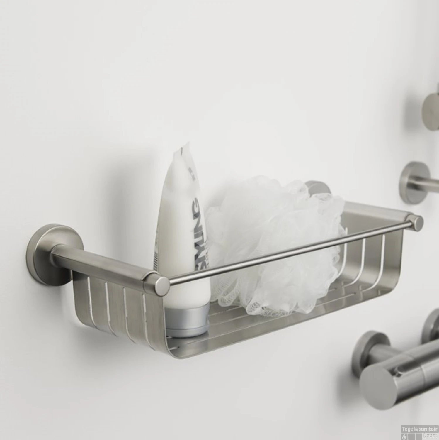De spons-zeephouder van de accessoireserie Boston is uitgevoerd in glanzend RVS. en is ook verkrijgbaar in geborsteld RVS. Dit product kan aan de wand worden geschroefd. maar kan ook met behulp van Tigerfix 1 op een gladde en harde ondergrond geplakt worden. U hoeft dus niet te boren. (Tigerfix is los verkrijgbaar). Er zijn van deze serie diverse sanitair accessoires verkrijgbaar. Dit product maakt deel uit van het Boston totaalconcept. dat verder bestaat uit kranen. badmeubelen. douche accessoires en douchecabines. alles in dezelfde stijl.
