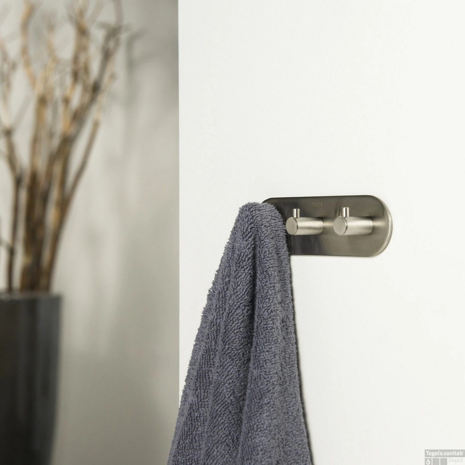 Deze stijlvolle haak van het merk Tiger is gemaakt van geborsteld roestvrij staal, het materiaal is licht mat zilver van kleur. De 3-delige haak is eenvoudig te bevestigen met de bijgeleverde plakstrip. De haak kan worden gebruikt voor het ophangen van bijvoorbeeld uw handdoek en/of badjas en heeft een moderne uitstraling. De producten van het merk Tiger zijn allen voorzien van 5 jaar fabrieksgarantie.
