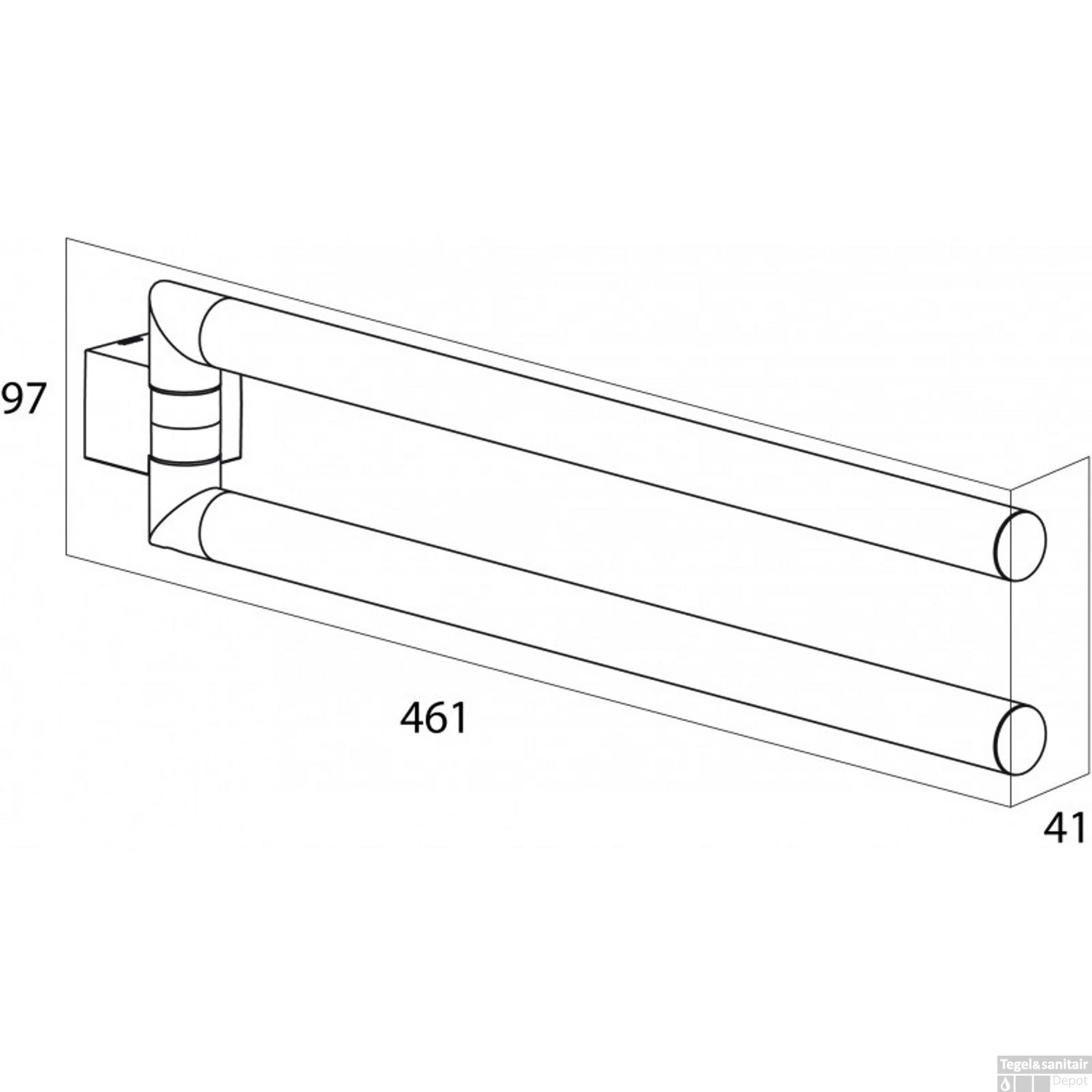 Het 2-armige handdoekrek uit de Tiger Nomad serie is uitgevoerd in de kleur mat zwart. Dit handdoekrek is een prachtig rek voor in de moderne badkamer. De beweegbare armen bieden plaats aan twee handdoeken en geven optimaal invulling aan de ruimte rondom de wastafel. Rondslingerende handdoeken is hiermee verleden tijd! Dit rek is eenvoudig te bevestigen, doordat gebruik gemaakt wordt van een muurplaatje zijn de bevestigingsmiddelen niet zichtbaar. Dit rek is ook verkrijgbaar in de kleur chroom. De afmetingen van het rek zijn (b)4.1 x (d)46.1 x (h)9.7 cm.