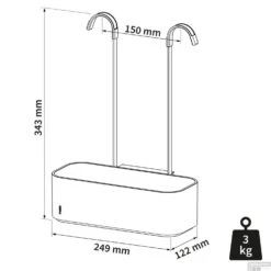 Het rekje is gemaakt van kunststof en heeft een zwarte kleur. Het doucherek heeft een lengte van 24,9 cm, een breedte van 12,2 cm en een hoogte van 34,3 cm.