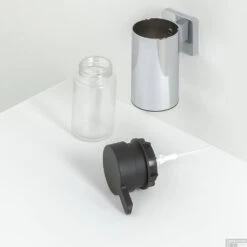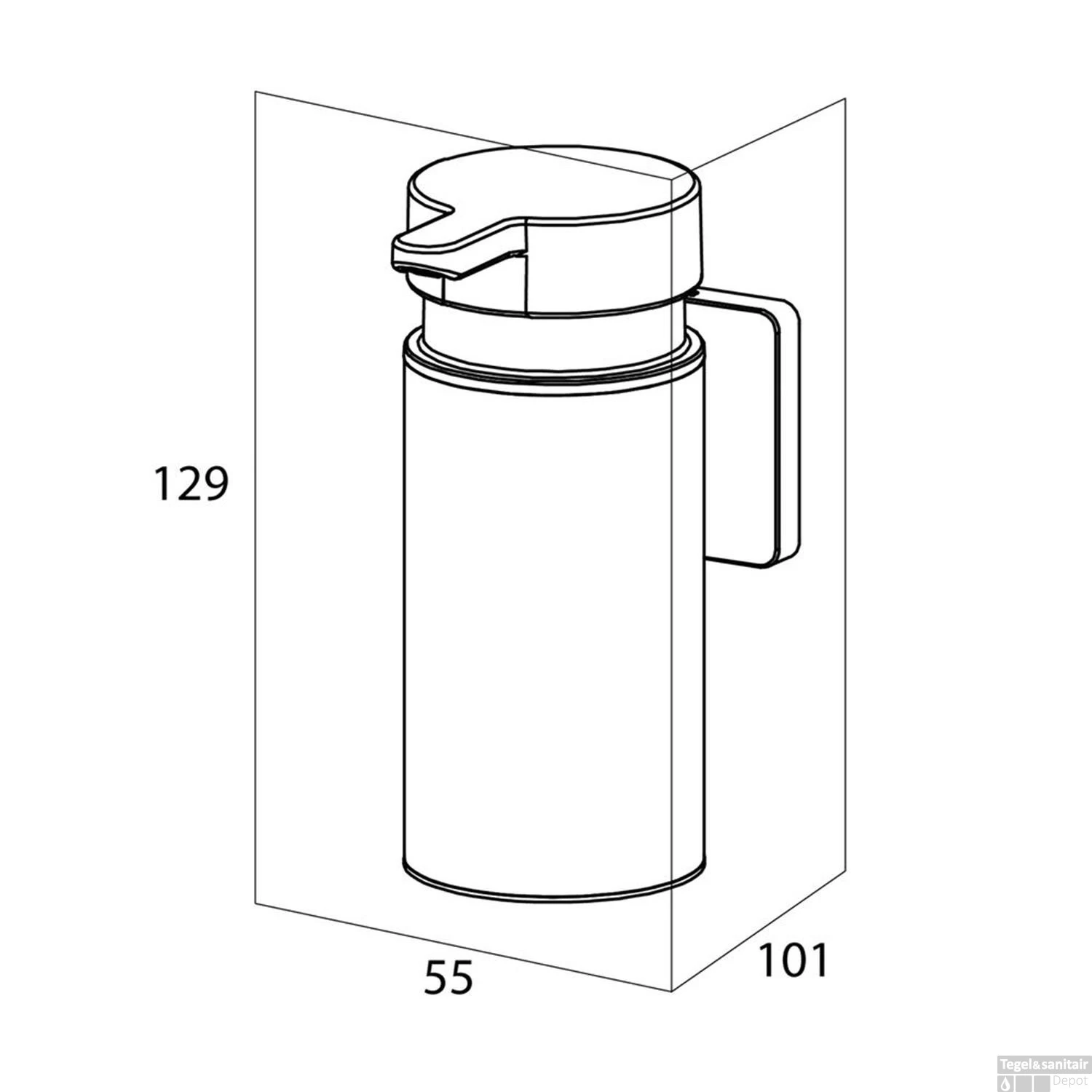 Het wandmodel is tevens beschikbaar in een kleinere maat. Het kunststof reservoir heeft een inhoud van 135 ml, is eenvoudig uit de houder te halen om opnieuw te vullen. De bevestigingsmaterialen zijn inbegrepen en bestaat uit RVS schroeven en Fischer pluggen.