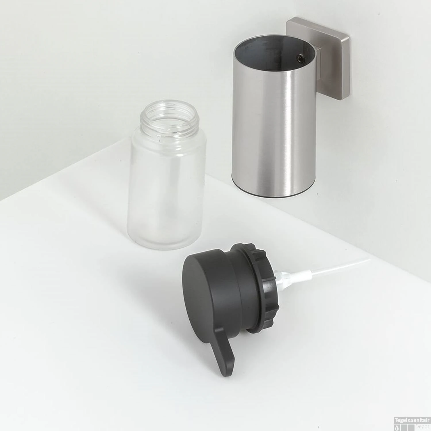 Het wandmodel is tevens beschikbaar in een kleinere maat. Het kunststof reservoir heeft een inhoud van 135 ml, is eenvoudig uit de houder te halen om opnieuw te vullen. De bevestigingsmaterialen zijn inbegrepen en bestaat uit RVS schroeven en Fischer pluggen.