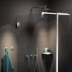 De douchemand wordt geleverd inclusief bevestigingsmateriaal, RVS schroeven en Fischer Pluggen.