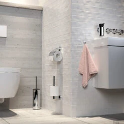 De Toiletrolhouder uit de Noon serie van Tiger wordt geleverd in een chromen kleur. Met deze kleur kunt u gemakkelijk met andere artikelen combineren in uw badkamer of toilet. De houder valt niet alleen op met zijn uiterlijk, maar ook omdat hij zeer praktisch is. Zo kan de toiletrolhouder zeer eenvoudig op de gewenste positie worden geplaatst door middel van de meegeleverde bevestigingsmaterialen, bestaande uit RVS schroeven en Fisher pluggen. De toiletrolhouder heeft een afmeting van 13.5x13x4 cm.