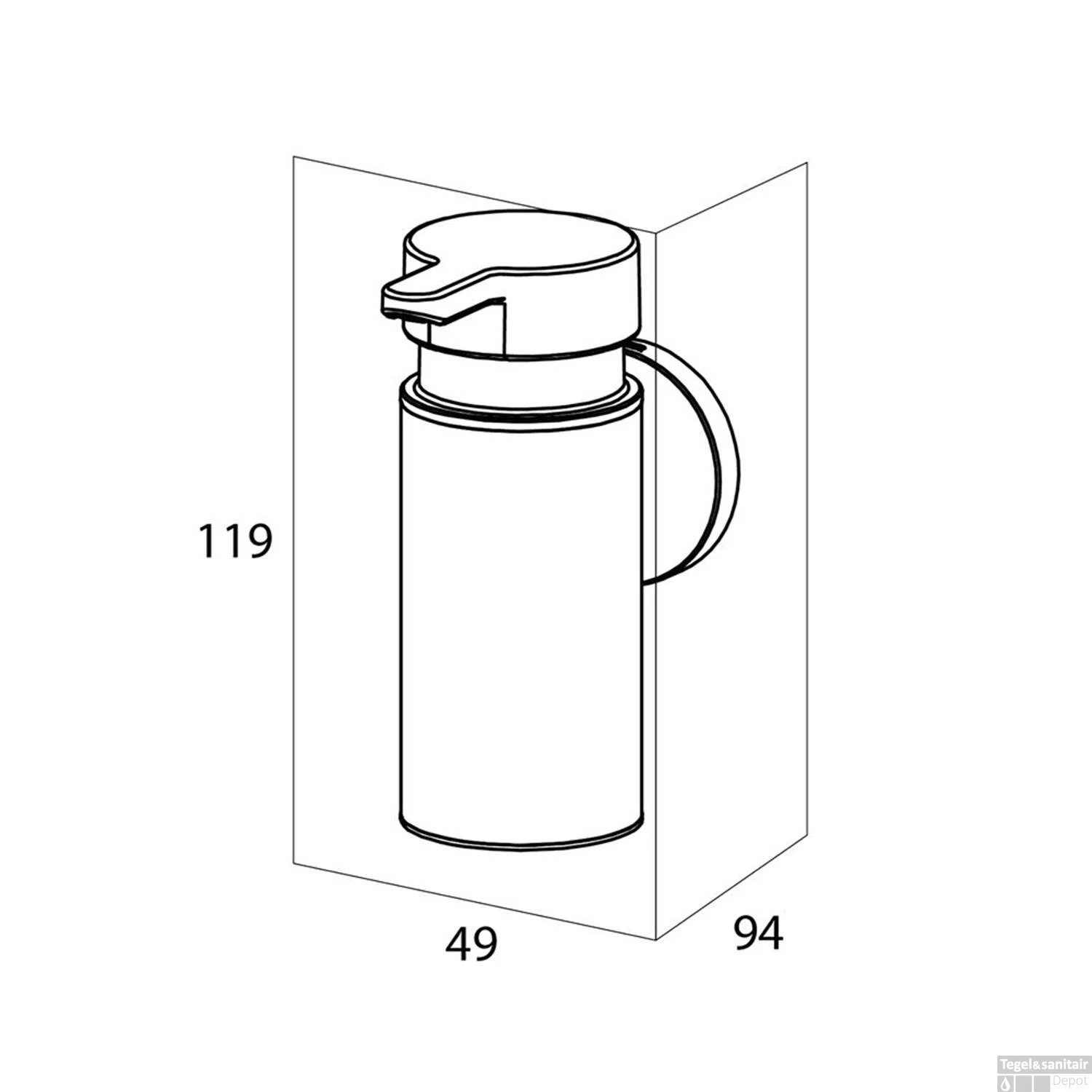 Het wandmodel is tevens beschikbaar in een grotere maat. Het kunststof reservoir heeft een inhoud van 90 ml, is eenvoudig uit de houder te halen om opnieuw te vullen. De bevestigingsmaterialen zijn inbegrepen en bestaat uit RVS schroeven en Fischer pluggen.