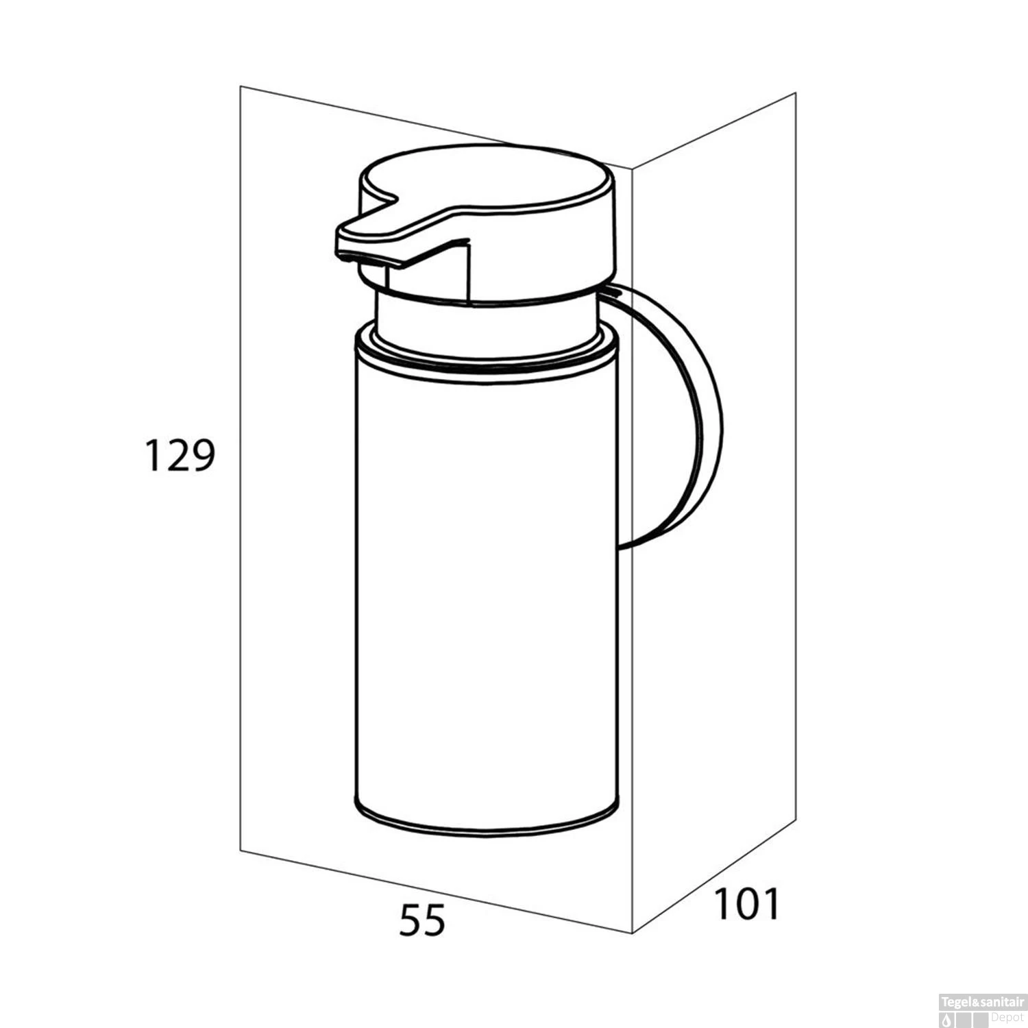 Het wandmodel is tevens beschikbaar in een kleinere maat. Het kunststof reservoir heeft een inhoud van 135 ml, is eenvoudig uit de houder te halen om opnieuw te vullen. De bevestigingsmaterialen zijn inbegrepen en bestaat uit RVS schroeven en Fischer pluggen.
