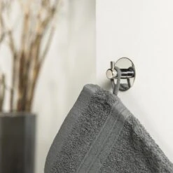 De Tiger haak Rhino is uitgevoerd in verchroomd RVS. De zelfklevende haak is eenvoudig aan te brengen op harde, stevige ondergronden in bijvoorbeeld de badkamer of de keuken.