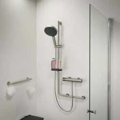 De Tiger Boston Steungreep Comfot & Safety is een wandbeugel van 45 cm uit de Tiger Boston Comfort & Safety serie, die is uitgevoerd in de kleur RVS geborsteld en extra ondersteuning en comfort biedt in de badkamer, de douche en het toilet. De ergonomische veiligheidsgreep heeft een diameter van 25 mm en kan zowel horizontaal, verticaal als diagonaal geplaatst worden zodat ondersteuning wordt geboden waar noodzakelijk. De maximale belastbaarheid bedraagt 150 kg. Daarnaast kan er een antislip grip op de wandbeugel gemonteerd worden, deze is apart verkrijgbaar.