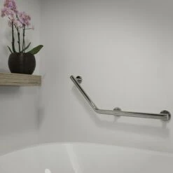 De Tiger Boston Steungreep met bocht 135º Comfort & Safety – links is een wandbeugel uit de Tiger Boston Comfort & Safety serie. De wandbeugel is uitgevoerd in de kleur RVS gepolijst en biedt extra ondersteuning en comfort tijdens het gebruik van het bad, de douche of het toilet. De ergonomische veiligheidsgreep heeft een diameter van 25 mm en het horizontale gedeelte heeft een maximale belastbaarheid van 150 kg. Daarnaast kan er een extra antislip grip op de veiligheidsgreep gemonteerd worden, deze is apart verkrijgbaar.