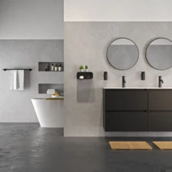 Schuif het bakje op het muurplaatje en je kunt altijd afwisselen. Het wandbakje is gemaakt van kunststof en kan dus niet roesten. Door de waterafloop onderin kun je het bakje gemakkelijk schoonhouden zodat het douchemandje jarenlang mooi blijft. De zwarte kleur geeft een stoere twist aan je badkamer en is makkelijk te combineren met andere accessoires.